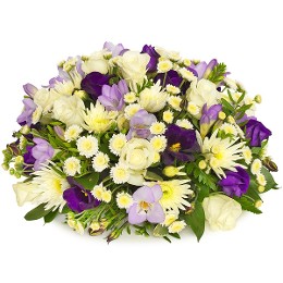 Violettes Trauergesteck