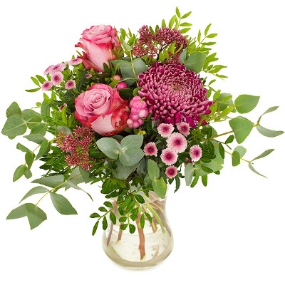 Unsere talentierten Floristen haben sich von der sehnsüchtigen Melancholie des Herbstes inspirieren lassen und diesen Strauß komponiert. Er erinnert an ein Orchester an Herbstfarben begleitet von einer burgunderroten, intensiven Melodie. Die Herbstklassiker wie Rosen und Chrysanthemen harmonisieren hier perfekt!