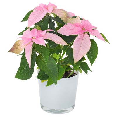 Träumerischer, rosa Weihnachtsstern in einem modernen Glasübertopf. Für besondere Weihnachtsmomente! Ein tolles Geschenk für die Winterzeit. (Inkl. Glasübertopf).